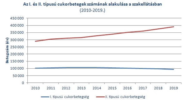 Az I. és a II. típusú cukorbetegséggel ellátott betegek hazai számának változása megfelel a nemzetközi trendeknek, miszerint előbbi inkább stagnál, míg utóbbi, amely az életmódbeli tényezők hatását is figyelembe véve szerzett betegségnek tekinthető, ugyanezen (pl.: táplálkozási, fizikai aktivitás hiányosságaiból következő) kockázatok térnyerésével egyidejűleg határozott növekedést mutat: